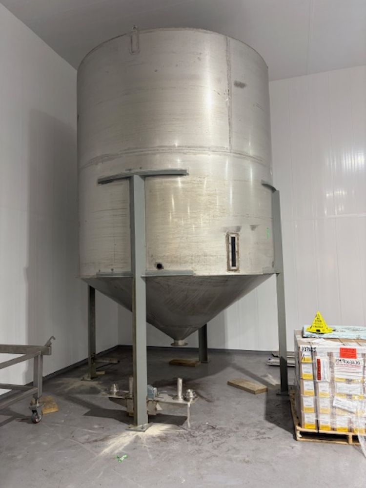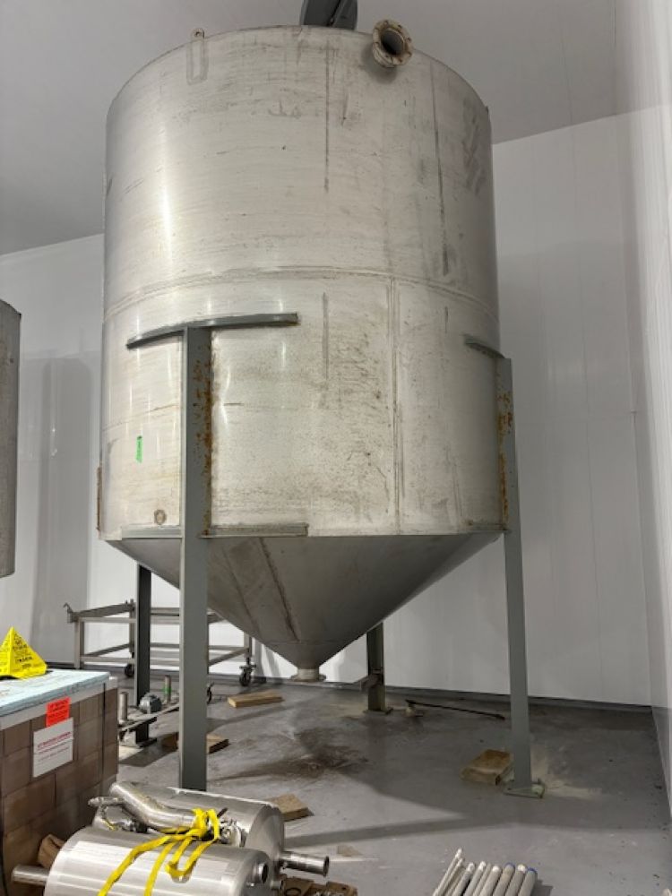 6500 Gal (24,750 L) 304 Vertical Stainless Steel Storage Tank Manufactured new. NEVER USED! 304 stainless steel tank with viewing glass 2X Available (diagram available) 15'H X 10'D with cone bottom and viewing glass Location: Halifax, NS
