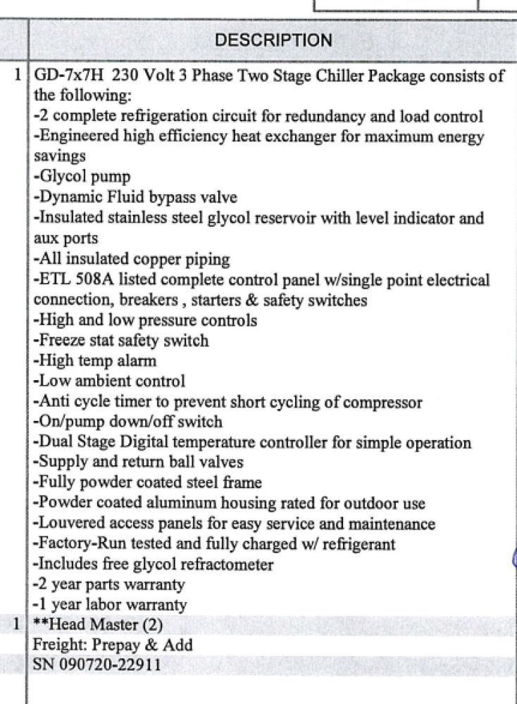 G&D Chiller and Heat Coil used for 2 years. Location: Alexandria, ON