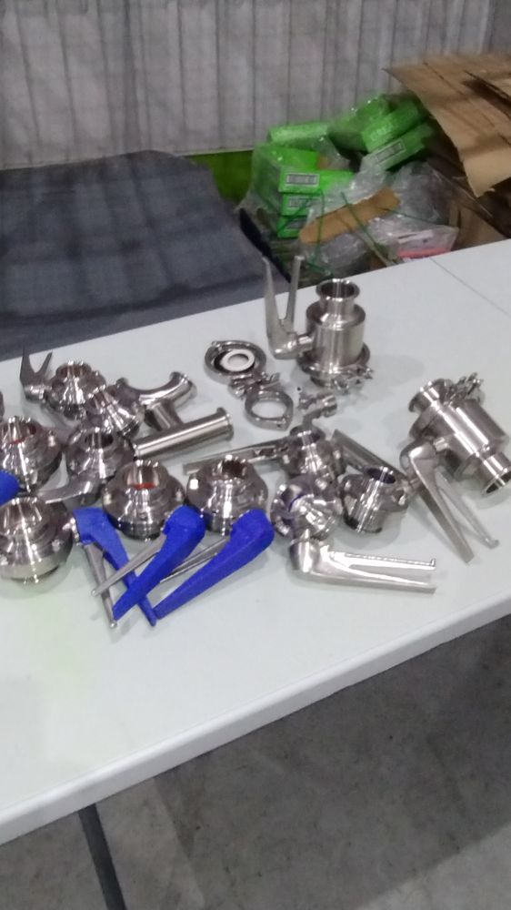 1.5" various Tri Clamps and Clamps Hardware Selling in Bulk Also available Transfer Hoses Braided Location: Alexandria, ON