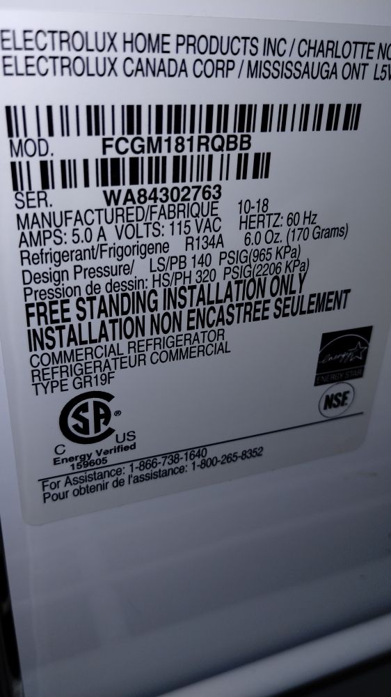Frigidaire (Electrolux) Commercial 18.4 Cu. Ft. Glass Door Merchandiser Refrigerator Location: Alexandria, ON
