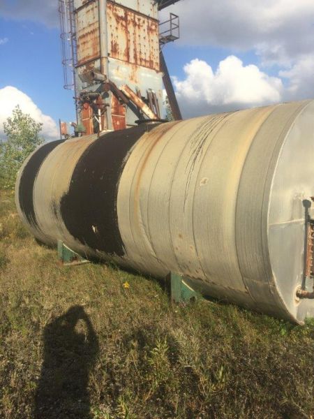 10000/11000 Gal Asphalt/Cement Steel Storage Tanks Horizontal Tank One 8' 6" Diameter and 26' long Tank Two 9' Diameter and 21' long. The tanks are asphalt cement storage tanks. All the Asphalt Cement AC was drained while it was 300' F. There is some on the walls and bottom of tank. The tanks have Hot Oil Coils in them and worked well till they were taken out of service The coils were drained of thermal oil as best possible and then all were capped off. The AC in tanks sets up once cool and is stable. All is as is where is subject to detailed inspection. Location: Southwestern London, Ontario area