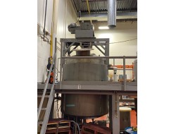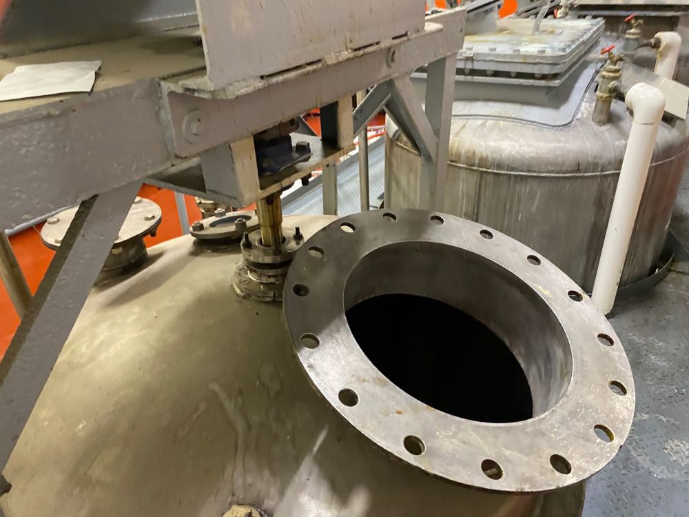1000 L (265 Gal) Stainless Vertical Tank with hand operated mixer Open Top Food Grade 53"H (plus 8" Cone) X 45"D Mfg: Liquid Carbonic Location: Burlington, ON Canada