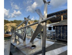 Stainless Steel Reactor Tank With Mixer or about 1,650 litres (440 gallons) filled to 75% of height for mixing. 48”H and 55.5”D The tank and impeller are stainless as are the 3 baffles on the inside of the tank. The baffles could be removed easily. There is no scraper as the tank was designed to be capable of aggressive agitation, so it has a dual impeller set up. 5 HP motor and 3 side outlets.The lid is configured for easy removal if necessary. Location: Burnaby, BC